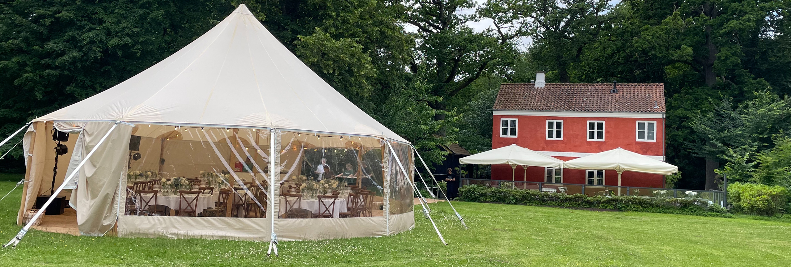 Teltet skal I selv stå for at leje ind. Vi kan være behjælpelig med kontakt til f.eks. Luksustelte.dk ,som er benyttet tidligere. Det er ikke et krav at disse benyttes. Der skal dog være indgået en aftale om det praktiske mellem os og teltudlejer.